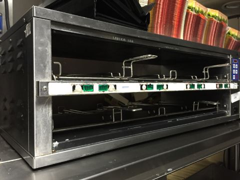 1 x Prince Castle Countertop Pass-Thru Holding Bin - Model DHB2PT-33B - For Busy Commercial Kitchens - CL200 - Ref 241 - Location: Somerset BA16 - RRP £2500 - Equipped with MenuTrak Food Supervision System, which identifies where menu items are located and tracks their respective hold times, Capacity: Up to six 1/3-size pans, Pass-thru design, allows operator to access product from the front and back of the bin, rack system simplfies cleaning, Each cavity equipped with rack system that holds three 1/3-size pans, Compact design allows bin to fit anywhere, Includes 8 x removable pan covers, allowing users to hold both fried and non-fried foods.