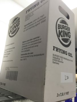 2 x Unused Bottles BURGER KING FRYING OIL - 7.5 Liter Bottle Size - Unused Boxed Stock- Ref 231 - CL200 - Location: Somerset BA16