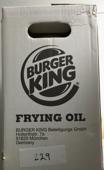 2 x Unused Bottles BURGER KING FRYING OIL - 7.5 Liter Bottle Size - Unused Boxed Stock- Ref 229 - CL200 - Location: Somerset BA16