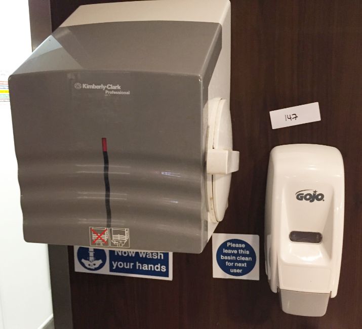 1 x Kimberly Clark Hand Towel Dispenser and Gojo Soap Dispenser - Buyer to Remove - CL200 - Ref 147 - Location: Somerset BA16