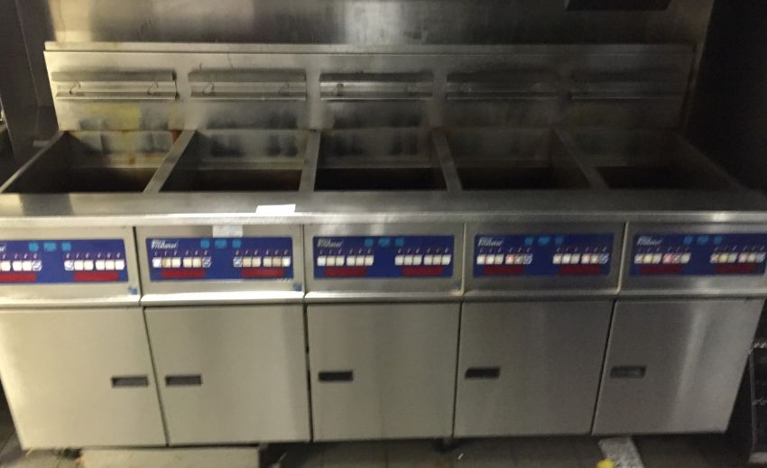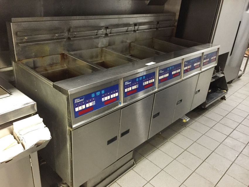 1 x Pitco Frialator AG14S Commercial 5 Compartment Gas Fryer with Filter Cartridge and 5 Baskets – Five Functional Fryers Combined into One Unit - Each Unit Can Control it's Own Settings and Temperature - Ideal For Restaurants and Fast Food tTakeaways - Dimensions H93 x W198 x D97cm – Method statement required for safe removal by buyer - Ref 222 – CL200 – Location: Somerset BA16