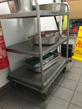 1 x Mobile Stainless Steel Trolley and Contents as Per Photo - 75cm x 50cm x 103cm - ref 292 - CL200 - Location: Somerset BA16