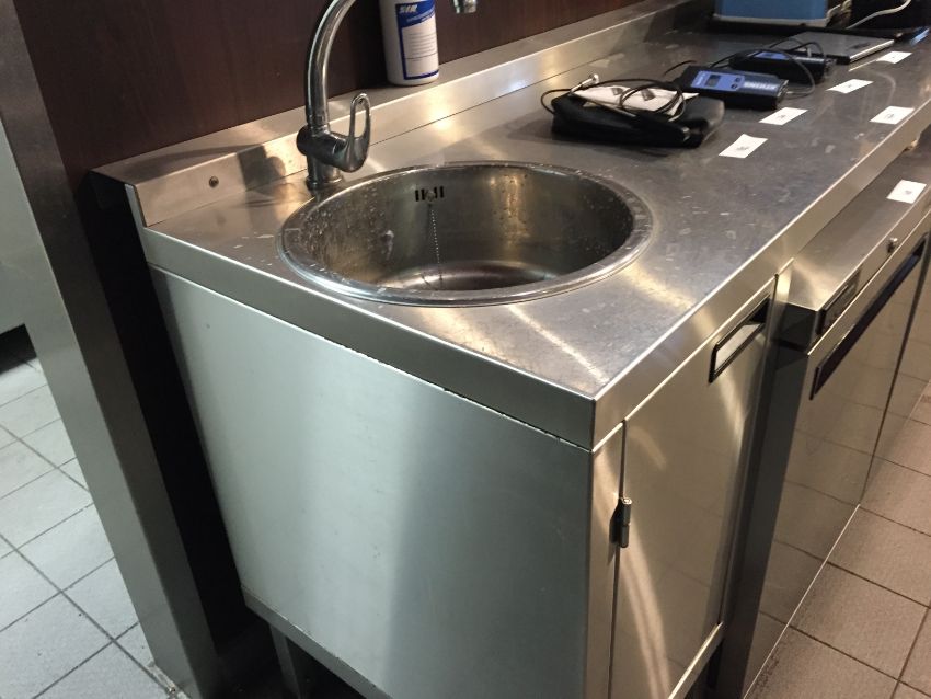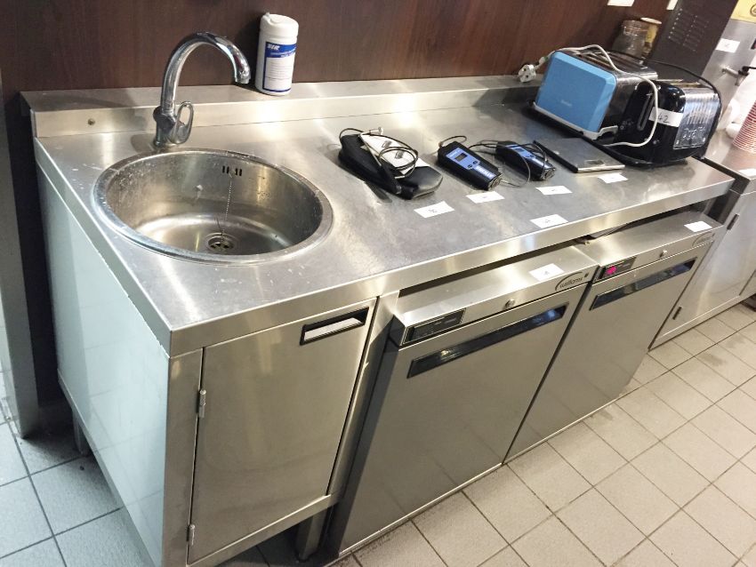 1 x Stainless Steel Commercial Workbench With Integrated Round Sink Bowl, Mixer Tap and Cabinet - Please note that the other items pictured ARE NOT Included - H91 x W170 x D71.5 - CL200 - Buyer to Safely Remove - Ref 167 - Location: Somerset BA16