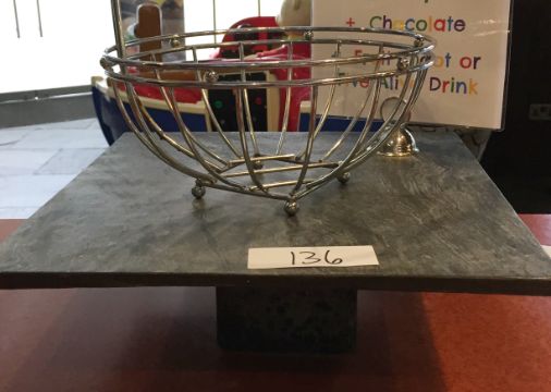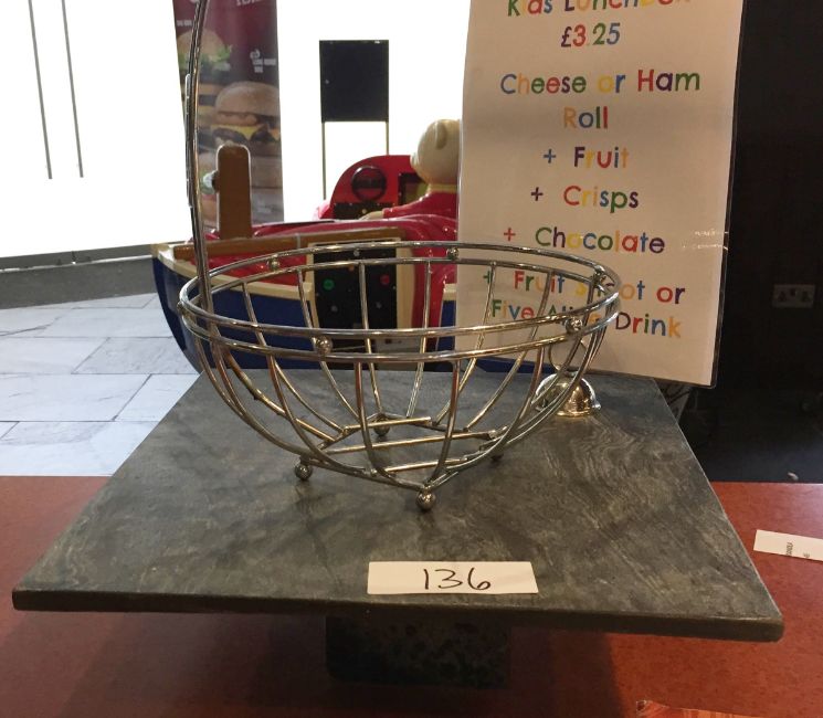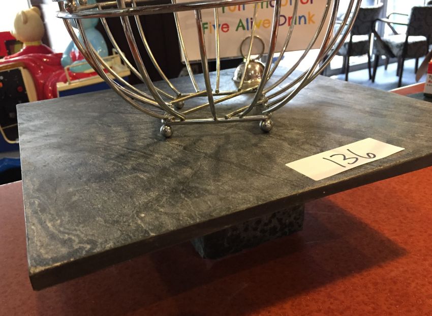 1 x Slate Single Tier Food Display With Base, Chrome Sign Holder and Wire Fruit Basket - Slate Size 40x40x1.75mm - Ideal For Buffets, Restaurants, Hotels or Bakery Business - CL200 - Ref 136 - Location: Somerset BA16