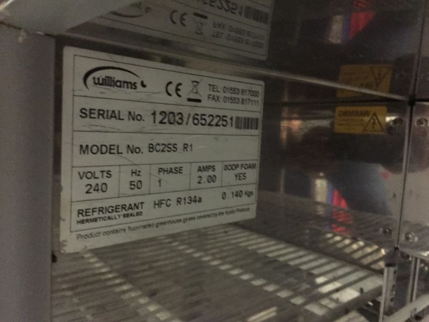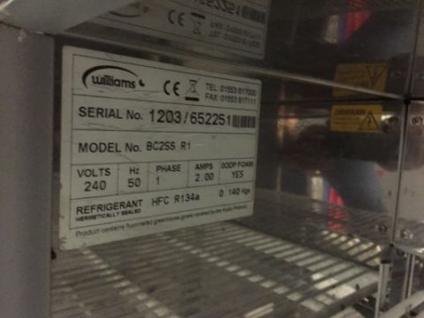 1 x Williams Two Door Commercial Stainless Steel Chiller - Model BC2 SS R1 - 240v -H89 x W89 x D51 cms - CL200 - Ref 162 - Location: Somerset BA16