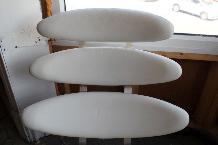 1 x Voga Corona Lounge Chair - Inspired by Poul Volther - Cream Aniline Leather With Chrome Swivel Base - Iconic Timeless Lounge Chair - Ideal For The Office or Commercial Business Premises - Please See Description - CL090 - Ref BL195 - Location: Blackpool FY1 - RRP £519 - Condition: The chair comes in good condition.  Our client originally purchased this chair as an unused customer return. Since purchasing, our client has put the chair into storage so it would benefit from being cleaned. Please see the description above and the pictures provided. This chair does not have full UK fire labels as it was intended for the European market, therefore the chair is only suitable if used in commercial or business premises. It is not suitable to be used in the home.