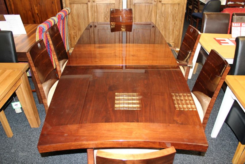 1 x Mark Webster 'RIMINI' High Gloss Walnut Extendining Table & 6 Chairs - Ex Display Stock – Dimensions: 250 x 110cm Extended - Ref: F108 - CL156 – Location: Failsworth M35 – Original RRP £6,000.00