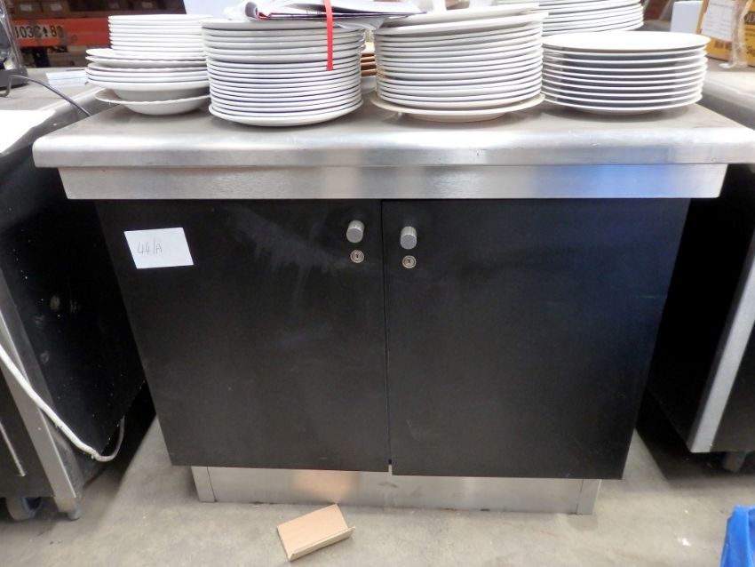 1 x Serving Counter - On Castors For Maneuverability - Ideal For Pub Carvery, Canteens, All You Can Eat Restaurants, Hotels - Stainless Steel & Black Finish - H85 x W100 x D115 cms - CL057 - Ref WEL018 - Location: Welwyn, Hertfordshire, AL7
