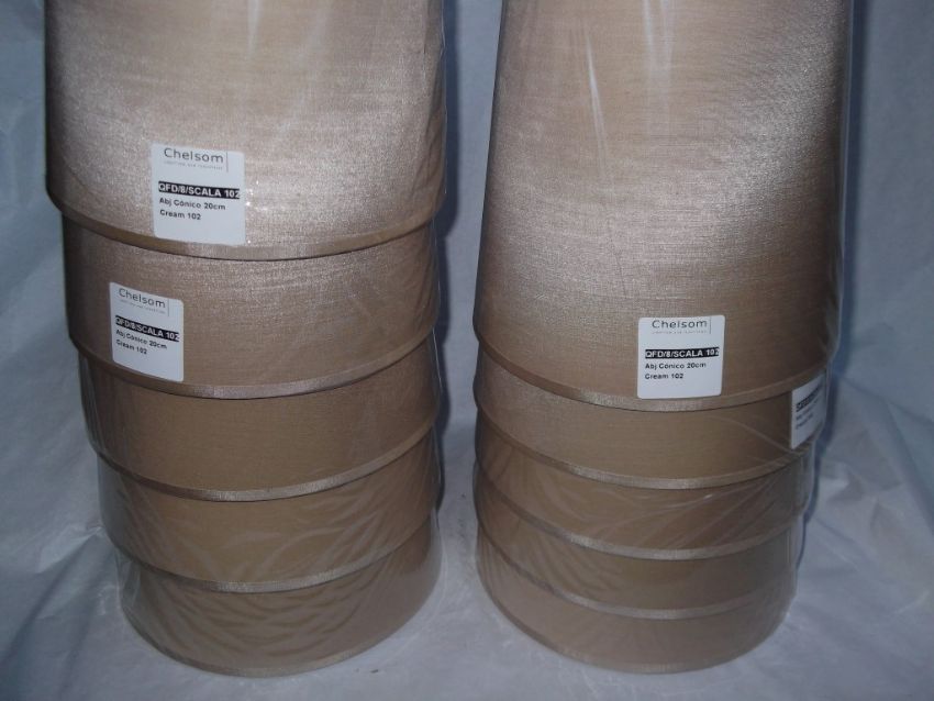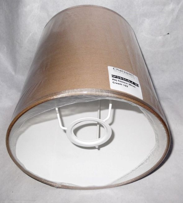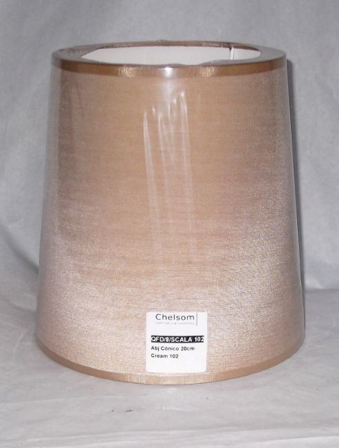 10 x DESIGNER TAPERED CYLINDER LIGHT SHADES By Chelsom - CL043 – Each Features A Silky Fabric In A Light Copper Tone – QFD/8/Scala 102 – Height:20cm - Top Diameter:20cm - Bottom Diameter:16cm - Max 40w - New Sealed Stock - Location: Altrincham WA14 - Approx RRP £350
