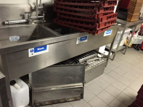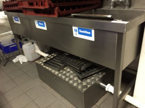 1 x Commercial Stainless Steel 3 Deep Sink Unit (contents in photo not included) with Large Spray Tap - Dimensions 186cm x 68cm x height 88cm - Method statement required for safe removal by buyer - ref 249 - Removed From Site - Ready For Collection - CL200 - Location: Somerset TA4