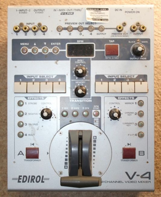 1 x Edirol V-4 4 Channel Video Mixer - Untested - Great Condition - CL090 - Ref BL186 US - Location: Blackpool FY1 - Please note that this item is to sold as seen in the pictures provided. It comes untested. We have a large number of lighting and audio equipment which have been in storage within a well known Blackpool nightclub, items may no longer have been used due to being upgraded with new equipment, needing spare parts, having unknown faults or simply not being needed any longer so put into storage. Please see the pictures provided.