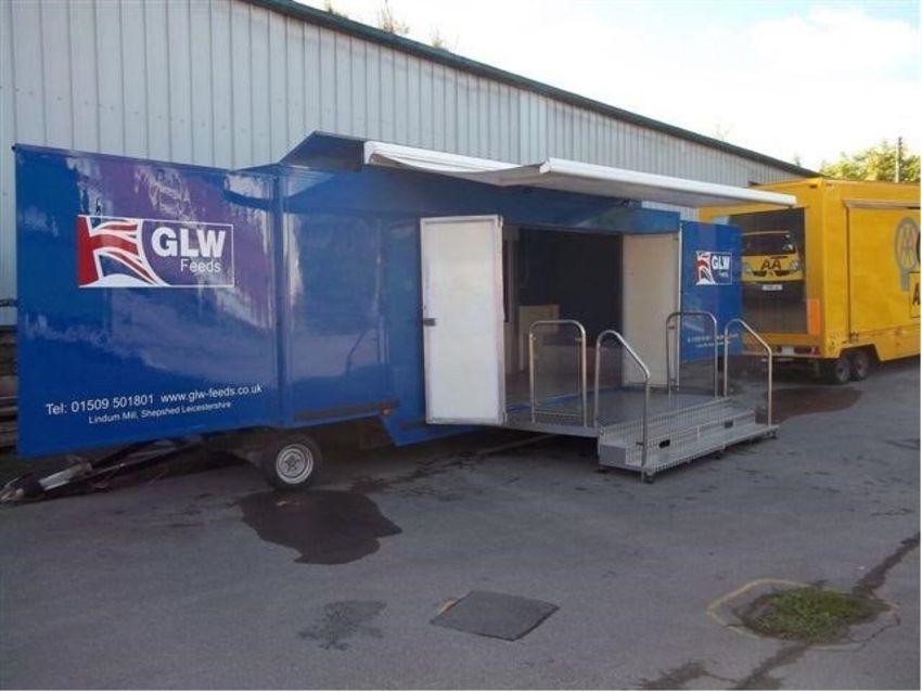 1 x County Group Towable Exhibition Trailer - Ideal For Exhibitions or Temporary Sale Point - Features Include Platform Steps, Canopy, Internal Lighting, Seating and Power Points - 11 Meter Length. 2.2 Meter Height, 3.7 Meters Extending Advertisement Length - CL057 - Location: North West London