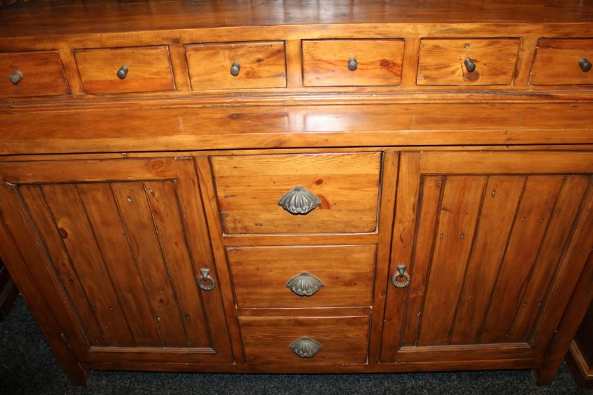 1 x Reclaimed Solid Wood Buffet Unit - 2-Door, 9-Drawer - Ex Display Stock – Dimensions: W152 x D45 x H212cm - Ref: F138 - CL156 – Location: Failsworth M35 – Original RRP £1,499.00