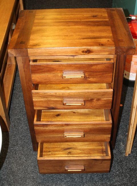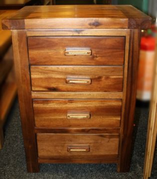 1 x Mark Webster 'Cognac' Acacia Solid Wood - 4-Drawer Chest - Ex Display Stock – Dimensions: W56 x D40 x H76cm- Ref: F130 - CL156 – Location: Failsworth M35 – Original RRP £399.00