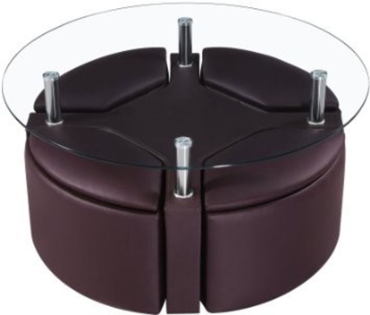 1 x Dakota Round Coffee Table with 4 Ottoman Storage Stools - Colour: BROWN - CL112 - Location: Blackburn BB2 - RRP £399.00 Chrome & Tempered Glass Supplied In Brown DESCRIPTION Fantastic high quality 5 piece Coffee Table Set. The modern, contemporary design creates a great centre-piece in any room. Available in Black or Brown. FEATURES 10mm Tempered clear glass top. Ottoman Stools offer a stylish storage solution. Fantastic design with the table top fitting on 4 chrome legs. Easy to clean PU finished stools with slide off tops for storage. Put simply, a gorgeous piece of furniture!! DIMENSIONS Coffee Table: Diameter: 90cm Height: 45cm Ottoman Stools: Height: 35cm Width: 48cm Depth: 23cm The Dakota set is delivered flatpacked and requires minimal self assembly. Fixings & instructions are supplied. IN 2 BOXES TOTAL WEIGT 48kg.