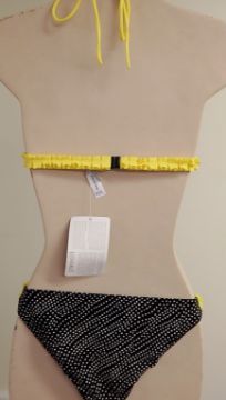 1 x Rasurel - Black Polka dot and Yellow Frill Gold Bikini - R21061 Touquet -Shorty - Size 2 - UK 32 - Fr 85 - EU/Int 70 - Ref: JRSW006 - New with Tags - CL011 – Location: Altrincham WA14 - RRP Approx £77.00 Due to a recent company closure, we are able to bring you this gorgeous piece of Designer Beachwear. Please see the other stunning Swimsuits and Bikinis available in today's auction.