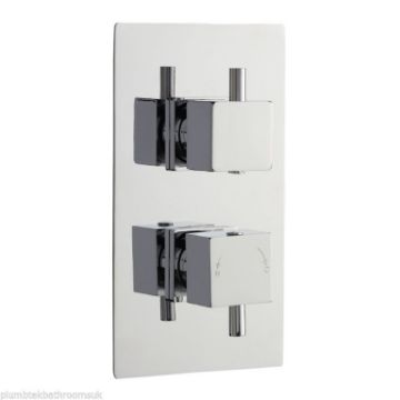 1 x Premier Minimalist Twin Thermostatic Mixer Shower Valve JTY302 with Diverter - PRO3 - CL007 - Unused Boxed Stock - Location: Altrincham WA14 - RRP £140.00 Can be fitted vertically or horizontally. Accurate flow control. Thermostatic control to +/- 1 degree - even if the water pressure fluctuates. Full thermal protection to prevent scalding in the event of hot or cold water shut off. In the event of hot or cold water failure, the valve will shut down within 1.5 seconds. The patented cartridge is highly resistant to calcium build up - even in hard water areas. Our valves are suitable for use with all systems: gravity fed, pumped, unvented high pressure or fully modulated combi-boilers. Excellent flow rates - even at low pressure. Our valves can deliver 5.5 litres per minute at 0.1 bar pressure. The cartridge is fully reversible, meaning if hot and cold supplies are the wrong way round, it doesn't need re-plumbing. Simply remove the cartridge, turn 180&° and replace. Manufactured from solid brass. Supplied As Pictured.