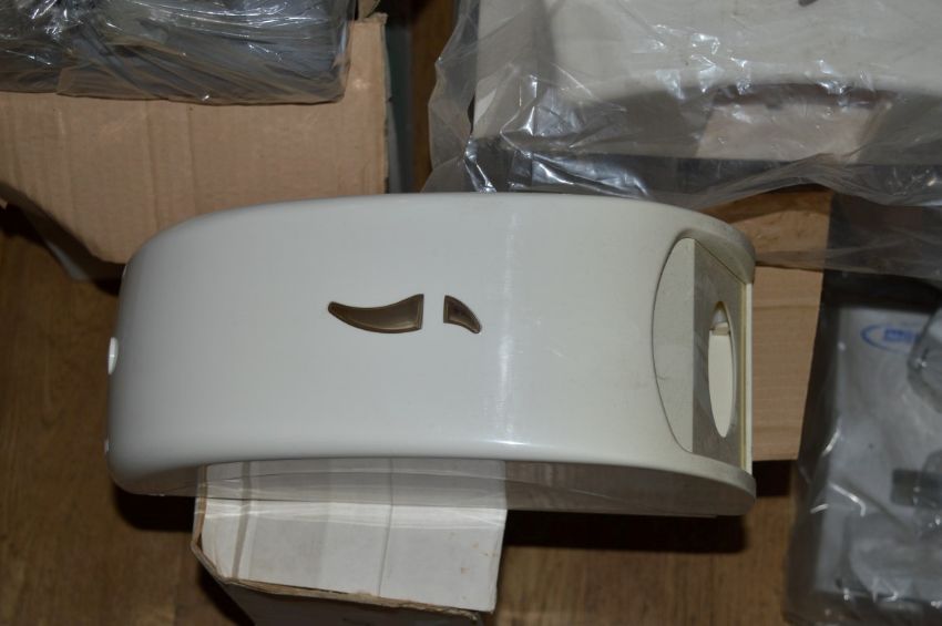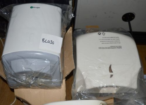 1 x Assorted Collection of Commercial Toilet Accessories - 8 Pieces Including Hand Tissue Dispenser, Soap Dispensers and Toilet Roll Dispenser - Unused Stock - CL090 - Ref BL030 FBA - Location: Blackpool FY1