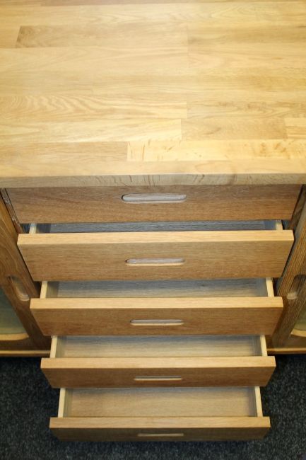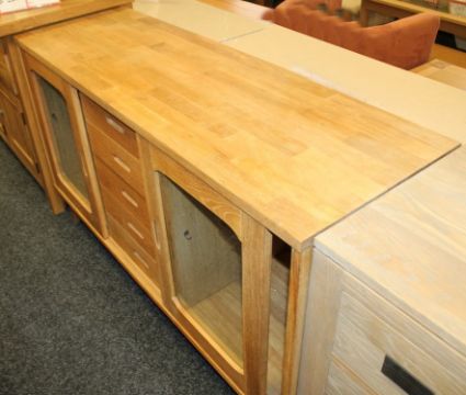 1 x Actona Solid Oak Sideboard - Features 2 Sliding Doors And 5-Drawers - Ex Display Stock – Dimensions: W97 x D47 x H190cm - Ref: F224 - CL156 – Location: Failsworth M35 – Original RRP £999.00