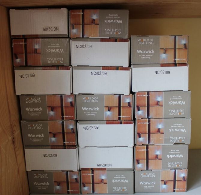 | 20 x World of Lighting WARWICK Solar Powered LIGHT STRING - With 50 White Lights - Total Length 6.5 Meters - Brand New Boxed Stock - CL090 - Location: Blackpool FY1 - Ref US BL153 - RRP £400! |