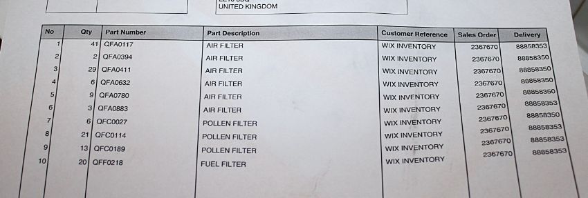 **Pallet Job Lot** Approx 150 x Assorted "Wix" Air, Pollen & Fuel Filters – Wix085 – 10 Different Models Supplied (See Stocklist Image) – CL045 - New / Unused Stock - Location: Bolton BL1 - Huge Resale Potential - Lot Includes a great selection of Air Filters covering a wide range of makes & models,