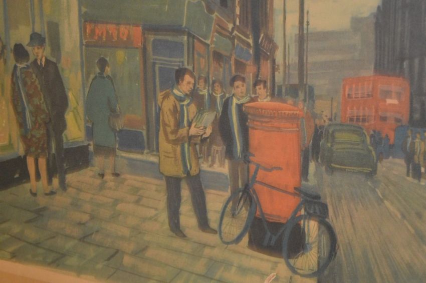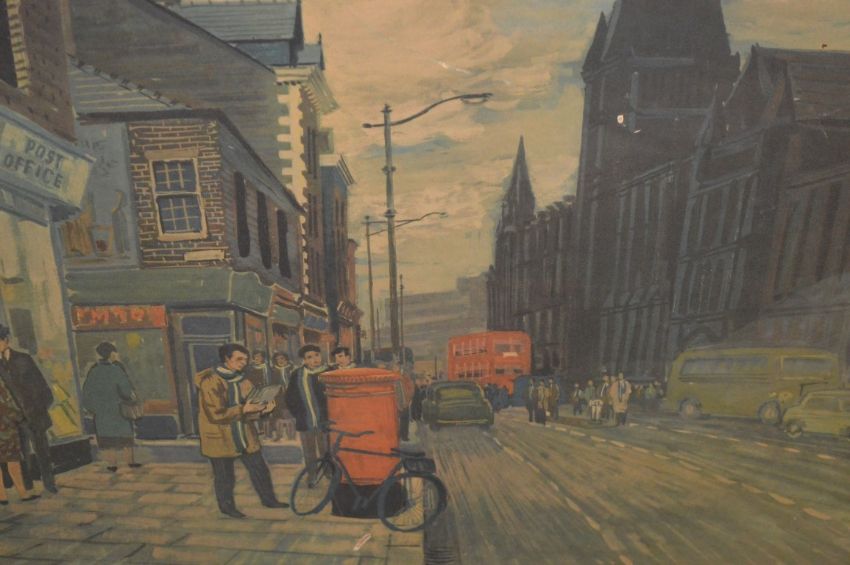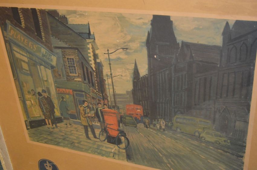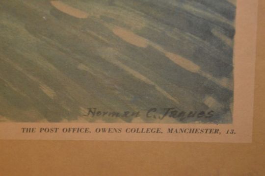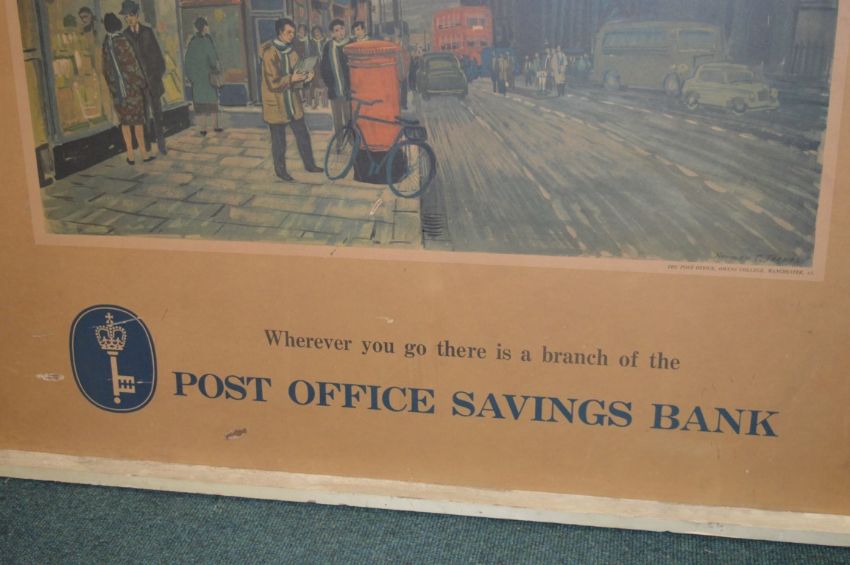 1 x Antique 'Post Office Savings Bank' Framed Advertisement Picture Depicting Owens College of Manchester - By Norman C. Jaques - Size: 100 x 90 cms  - CL113 - Location: Altrincham WA14