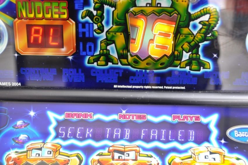 1 x "SPACE RAIDERS" Full-Size Arcade Fruit Machine - Manufacturer: Barcrest (2004) - £5 + Repeat-Chance Jackpots - NO KEYS - Pre-Owned - Fault Found, See Description - Ref: ARC6 - CL072 - Location For Collection: Altrincham WA14 The machine has been tested, powers up, however we have discovered a fault (ERROR MESSAGE: Reel D Setup Seek Tab Fail). Item may have the odd scuff or scratches associated with second hand ex operational equipment. Includes UK mains lead. Machine does not come with keys. Pictures shown are of the actual machine you are bidding on.