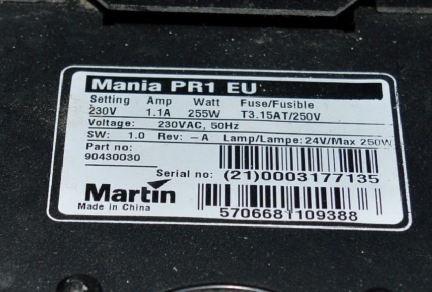 2 x Martin Mania PR1 Rotating Gobo Projector Night Club Stage Lighting Units - Untested - CL090 - Ref BL024 FBA - Location: Blackpool FY1 - Please note that this item is to sold as seen in the pictures provided. It comes untested. We have a large number of lighting and audio equipment which have been in storage within a well known Blackpool nightclub, items may no longer have been used due to being upgraded with new equipment, needing spare parts, having unknown faults or simply not being needed any longer so put into storage. Please see the pictures provided.