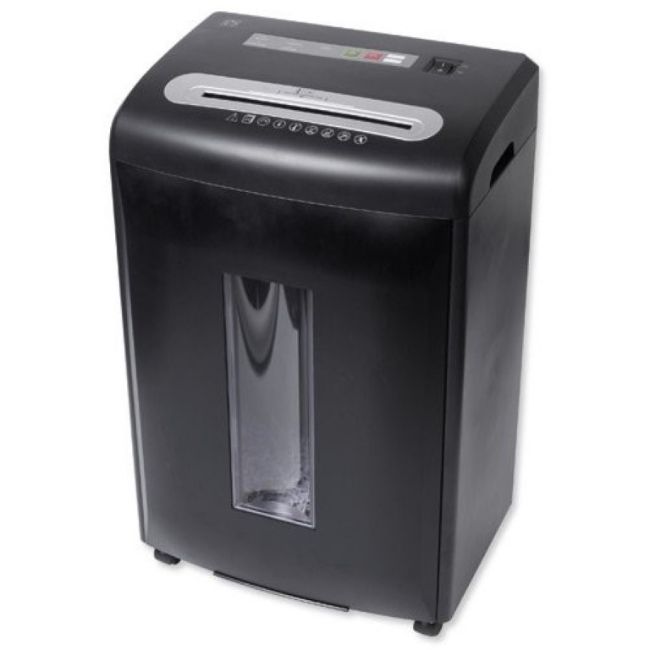 1 x Office Shredder - Model: 5 Star CC24 - Brand New & Boxed - Can Even Shred Credit Cards and Staples - Confetti Cut - Capacity: 28L - CL109 - Location: Hoddesdon EN11 - RRP £545.75 5 Star CC24 Shredder Sheet Capacity: 24 sheets. Confetti (cross) cut. Security Level (DIN): P-3. Cut dimensions: 4x40mm. Adequate bin volume of 28 litters. Additionally, shreds paper clips, staples and bank cards. Throat width: 240mm. Run time: 5 minutes. Indicators for full bin, overheat, door open and overload. Reverse function. Thermal protected motor. Sound level: 65 decibel. Dark coloured body with fine silver details. Dimensions: 420x305x650mm, Package weight: 24.69kg. *Please Note: Item has an 2-pin EU Plug, and will require a standard 3-pin adapter for use in the UK.
