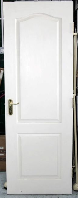 1 x Solid Wood Interior Fire Door - In Good Condition, Complete With Brass Handles and Hinges Attached - Painted In Cream - CL007 - H198cm x W76cm - Ref: PRO149 - Location: Altrincham WA14 *Please Note: 1 x Fire Door Supplied. Pictures are for example only.