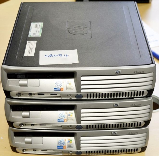 4 x HP Small Form Factor Desktop Computer - Intel Pentium 4 2.8ghz - 512mb Ram - HARD DISK DRIVES REMOVED - Model DC7100U ***READ DESCRIPTION*** Recently Taken From Working Office Environment - Cables Not Included - Requires Standard Kettle Power Lead - Ref SB084/HDR - CL106 - Location: Altrincham WA14 Please Note: In most cases, units will not contain CD Roms. 1 x Unit is faulty, another has damage to the case.