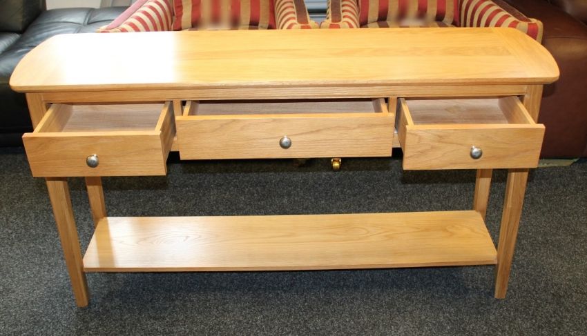 1 x Fryer Ash Top Painted Finish Console Table - 3-Drawer - Ex Display Stock – Dimensions: W145 x D38 x H78cm - Ref: F115 - CL156 – Location: Failsworth M35 – Original RRP £799.00