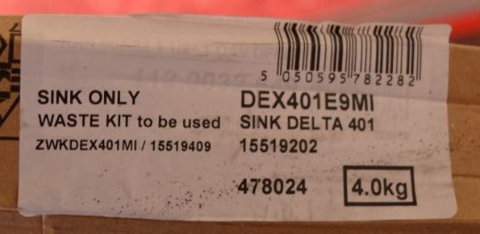 1 x Carron Phoenix Delta Inset Sink Bowl With Drainer - Stainless Steel - Classic Design - Perfect For The Modern Kitchen - Unused Stock - Model DEX400E9MI - CL090 - Ref BB - Location: Blackpool FY1