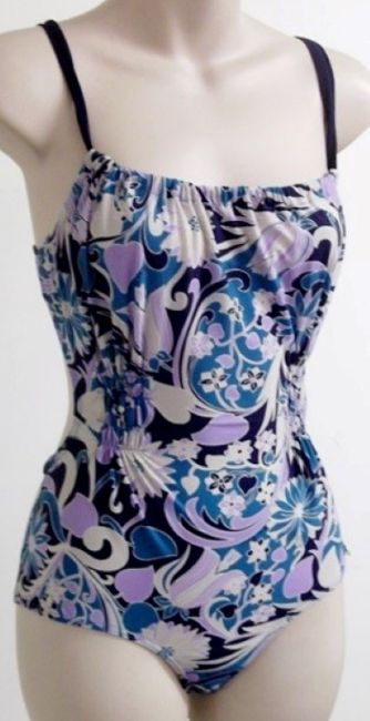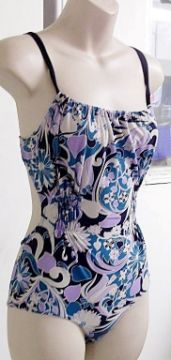 1 x 'Nina Ricci' Designer Soft Swimsuit - “COEUR JOIE” – Ref SW10 – Colour: Navy / Lilac - Size: UK: 8 / 10, FR: 2 - Business Closure - NR2B31 - New with Tags **RRP Approx £150!**