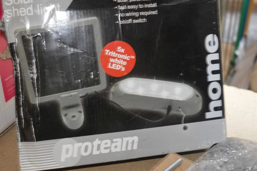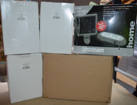 Assorted Collection of Solar Pawered Garden Lights - Includes Proteam Shed Light, Pair of Hanging Lanterns and Three Stone Effect Corner Garden Lanterns - Unused Boxed Stock - CL010 - Location: Altrincham WA14
