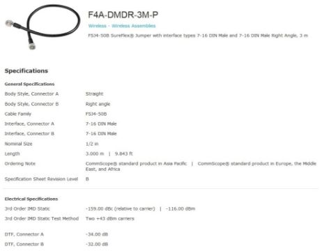 5 x Andrew Solutions Commscope SureFlex Jumper with Interface Types 7-16 DIN Male and 7-16 DIN Male Right Angle - Product Code F4A-DMDR-3M-P - New and Unused Stock - CL300 - Location: Altrincham WA14 - Please See The Images For Specifications.