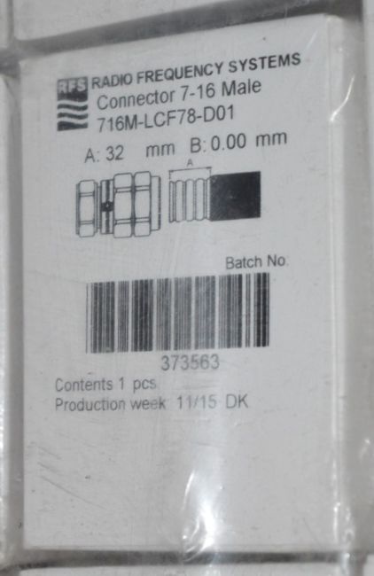 12 x Radio Frequency Systems 7-16 Male Connectors for Coaxial Cable - Type 716M-LCF78-D01 - Brand New Boxed Stock - CL300 - Ref PC259 - Location: Altrincham WA14 - Approx RRP £300!