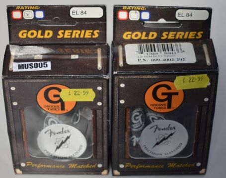 2 x Fender Gold Series Groove Tube Amp Valves - Matched Pair Duet Blue - EL84's - New and Boxed - CL020 - Ref Mus005 - RRP £45 - Location: Altrincham WA14
