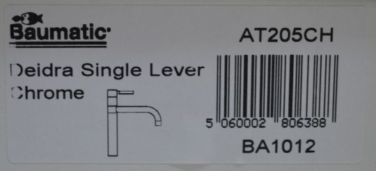 1 x Baumatic AT205CH Deidra Tubular Top Lever Mixer Tap Chrome – NEW & BOXED – CL053 – Location: Altrincham WA14 – RRP £79.99 Manufacturer: Baumatic Colour: Chrome Key Features Tubular style modern single mixer tap with horizontal control Single lever valve Single flow spout Minimum water pressure: