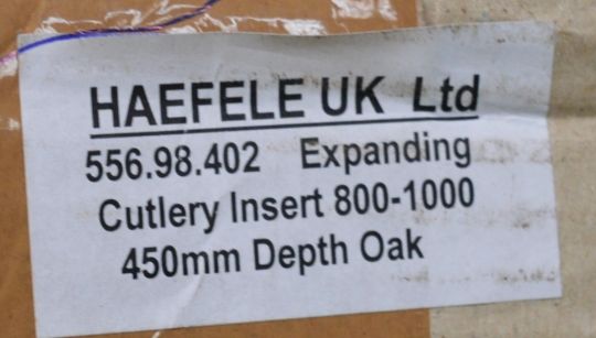 1 x Haefele Expanding Cutlery Drawer Insert - 800-1000mm For 450mm Depth Drawers - European Oak - Unused Stock - RRP £75 - CL011 - Ref Cat073 - Location: Altrincham WA14 Find more info @ http://www.hafele.co.uk/shop/images/external/pages/15DSH138-139.pdf