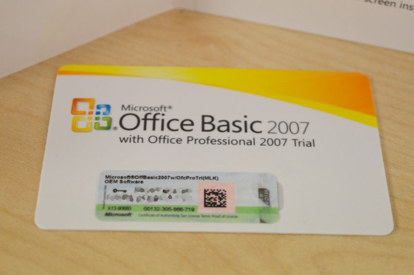 1 x Microsoft Office 2007 Basic COA - Features Word, Excel and Outlook - CL300 - Location: Altrincham WA14 - This is a used COA for Windows 2007 Basic, no software DVD is included as you are bidding on the COA only.
