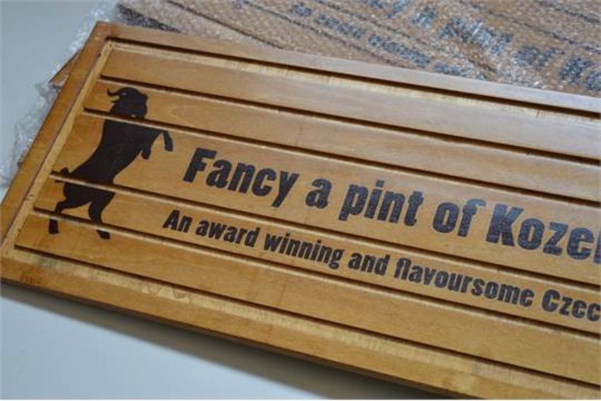4 x Wooden KOZEL Beer Drip Trays - Unused Bar Accessories - Size 60 x 22.5cm - CL011 - Ref CAT063 - Location: Altrincham WA14