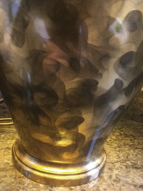 1 x Table Lamp With Reverse Painted Glass Base, And Shade - Height 72cm - Pre-owned In Very Good Condition - CL096 - Ref: AS15 - Bolton BL1 **NO VAT** This Item Is Available For Collection From Monday 18th July. Please do not bid if you are unable to organise and collect from the date shown. There is no VAT on the Hammer Price, However VAT Still Applies to our Standard Rate of Buyers Premium.