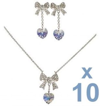 10 x HEART PENDANT AND EARRING SETS By ICE London - EGJ-9900 - Silver-tone Curb Chain Adorned With Heart Pendant & Bow Made With SWAROVSKI® ELEMENTS - New & Boxed - PT5 - CL042 - Location: Altrincham WA14 - RRP £450.00 This beautifully designed Heart and Bow pendant together with matching drop earrings is perfect for any occasion. The necklace comprises of a silver-tone curb chain adorned with a clear faceted heart pendant and bow, both made with SWAROVSKI® ELEMENTS. Add a chic and contemporary touch to any look with this striking necklace. The necklace measures 45cm (17.5") ICE London is a vibrant line of beautifully designed giftware & stationery. Taking inspiration from the catwalk, the ICE London designers use current trends to create must have pieces. ICE London is currently stocked internationally through some of the world’s most famous department stores as well as independent boutiques.