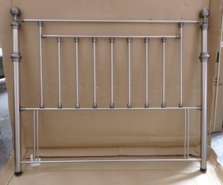 5 x "Reflections" Large Metal Headboard and Footboard Sets - Shiny Nickel Finish (10 Items) 4 x "Guinevere" Large Metal Headboards (1 x 150cm, 3 x 90cm) 3 x Stuart Jones "Cameo" 5ft Large Upholsted Double Piped Headboard In A Mix Of 3 Colours Supplied (Blue/Silver/Pink). 1 x Noble 90cm Divan Headboard In Antique Brass Finish (Not Pictured)