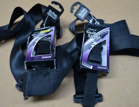 2 x On Stage Click It Guitar / Bass Straps - Product GSA6230 - CL020 - Ref Mus044 - New and Unused Stock - Location: Altrincham WA14_x00D_ _x00D_ On Stage Stands Click it Guitar Strap. Very similar in design to the DiMarzio ClikLok straps, these straps make taking your strop off simple and easy, whilst keeping your guitar secure. To use, simply remove your strap button and screw the screw through the end of the strap. Secure clips a small distance away allow simple removal of the rest of the strap._x00D_