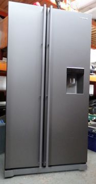 1 x Samsung American-Style (Side By Side) Fridge / Freezer RSA1WTMH - Dimensions: W91 x H178 x D73cm - Colour: Dark Grey Finish - Ref: MUS003 - CL007 - Location: Altrincham WA14 - NO VAT  Presented In Good Clean Condition. The RSA1WTMH side by side refrigerator has a stylish Manhattan Silver finish and features SAMSUNG’s unique Multi Flow technology, which provides even cooling throughout the freezer. Also included are a non-plumbed water dispenser with Brita filter, total no frost, an external digital display and control panel and an ‘A’ energy rating. *Please note All kitchen equipment is sold as seen in the pictures provided. Please review all the pictures in order to see the full condition.