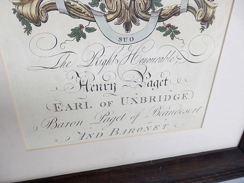 1 x Framed Historical Print - Henry Padget / Coat Of Arms - Dimensions: H65 x W54cm - Recently Removed From An Upmarket Bar Environment - NO GLASS - Ref: HOT057 - CL150 - Location: Altrincham WA14 *Please note that all bar equipment is sold as seen in the pictures provided.
