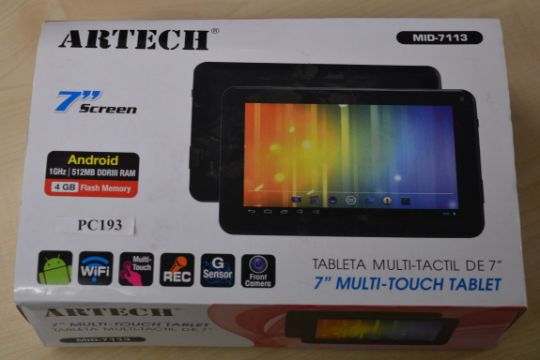 1 x Artech 7 Inch Tablet Computer - Spares or Repairs - Cracked Screen - 1ghz Processor, 512mb Ram, 4gb Storage - Boxed With Accessories - CL011 - Ref PC193 - Location: Altrincham WA14
