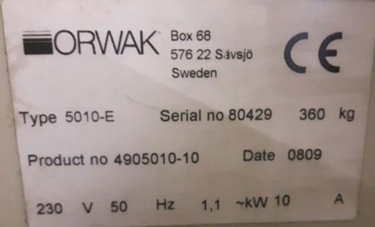 1 x Orwak 5010E Hydaulic Press Compact Baler - Used For Compacting Recyclable or Non-Recyclable Waste - Reduce Your Waste Disposal Costs - Ideal For Compacting Rubbish, Cardboard, Plastics, Glass or Garden Waste - CL011 - Keep Your Workplace or Business Premises Clean and Tidy - 240v UK Plug Operation - Full Tested and Working, Very Good Condition - Location: Bolton BL1 The 5010-E is an easy to use compact baler. Material is loaded into the top of the baler, and the press mechanism is slid onto the chamber before the compacting and baling cycle starts. undefined Product Type: Baler Product Name: 5010-E Savings on your waste collection Tidy premises Compliance to meet your legal obligations Space and time saving 36 second cycle 3 ton press force